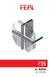 Facade F 35 is a system for the construction of continuous, self-supporting, fully glazed, warm-insulated facade construction of aluminum profiles. Specially designed facade window openings with swivel-hinge, inward or outward hinge, parallel opening and roof windows can be used for opening areas. FEAL systems for windows and doors are also compatible with the facade system. The glazing of the continuous facade is performed with the help of EPDM seals and clamping and cover moldings. Cover moldings are placed on the clamping strips. Materials resistant to weather conditions, temperature differences, mold, and waterproof protective tapes that prevent the penetration of water and moisture into the insulation are used as materials of facade components. FEAL’s F35 facade was designed as the facade with the narrowest cross-section on the market. The F 35 is intended for small or medium-sized projects where narrow aluminum frames and panoramic views are required. The thermal characteristics of F 35 are superior to previous solutions of facade systems and are able to meet the standards of a passive house thanks to the minimized width of the aluminum profile and the possibility of accepting glazing up to 50 mm.