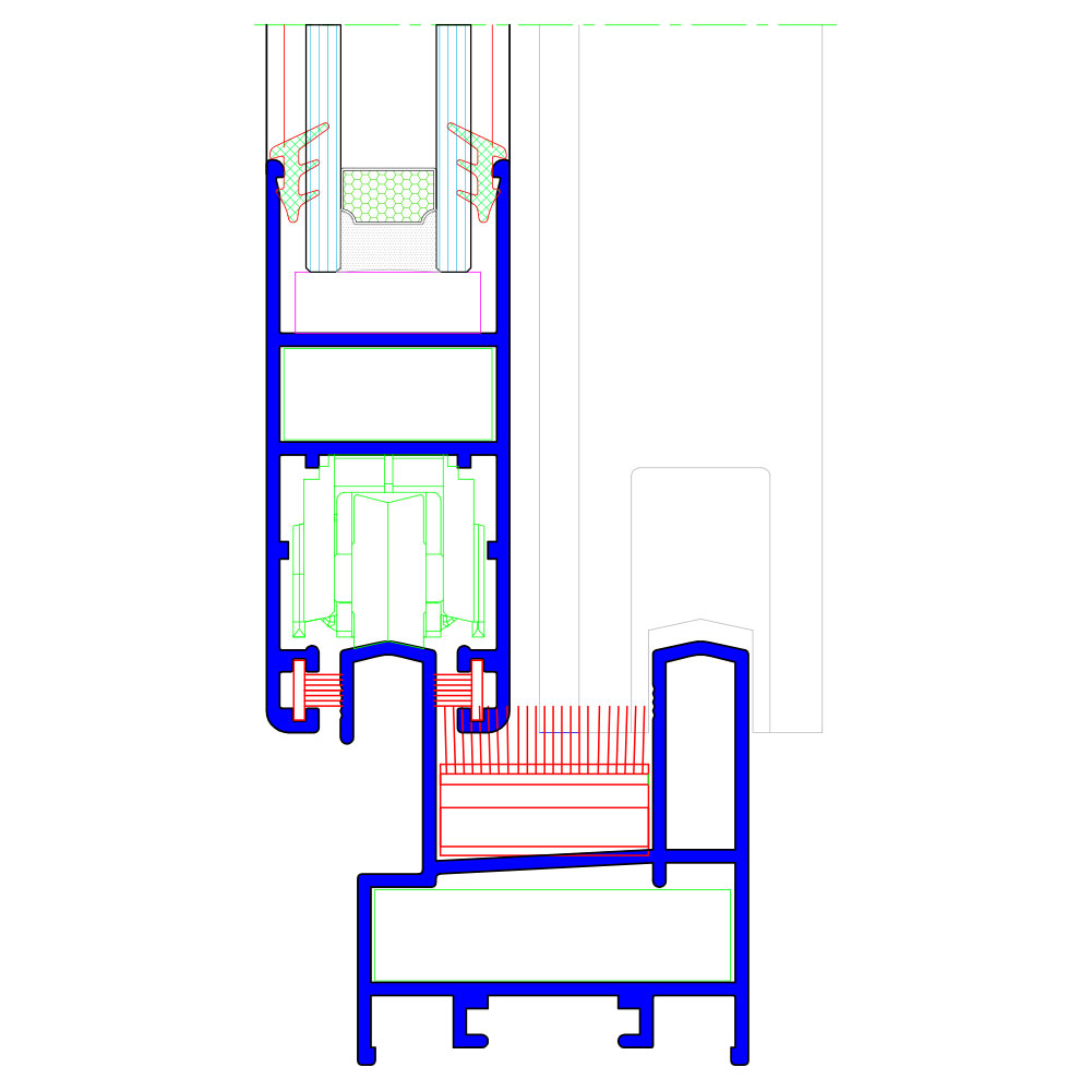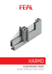 The HARMO system is intended for the production of sliding windows and doors in two-wing, three-wing, four-wing and six-wing versions. It is a profile system without a thermal break, the basic installation depth of the frame is 45 mm for two-wing and four-wing versions, 81 mm for three-wing and six-wing versions. Sealing was performed with EPDM seals. The Harmo system is compatible with the 45 MILL system, which enables the construction of larger and typologically diverse rocks. For larger wing dimensions, statically reinforced wing profiles are available. Possibility of locking the wings at one or more points.