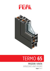 The TERMO 65 system is intended for the production of windows (opening inwards and outwards), doors (opening inwards and outwards) and fixed walls. It is a profile system with a thermal break, with basic installation frame depths of 65 and 73 mm. In addition to the basic frame/wing design with straight lines, frame/wing versions with rounded outer lines are also possible. Interruption of the thermal break is achieved with polyamide strips of 22 mm. In order to further improve the thermal characteristics of the profile, profiled XPS rods (extruded polystyrene - ʎ = 0.035 W / m2K) are installed in the profile chambers and such profiles are given the letter F. Sealing was performed with EPDM seals. Possible types of window opening: hinged, swivel, hinged-swivel, swivel opening inwards, swivel around the middle axis. Possible types of doors opening: opening inwards and outwards. The system is compatible with facade systems. Possibility to select profiles with groove 16/13. The hardware that is installed in the system is standard for the 15/20 Eurogroove and the 16/13 groove.